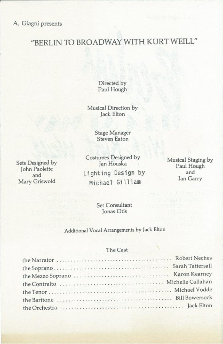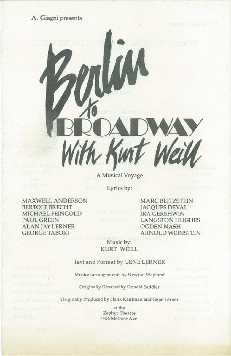 Zephyr Theater - Los Angeles, California | Berlin to Broadway | Tenor/Understudy |