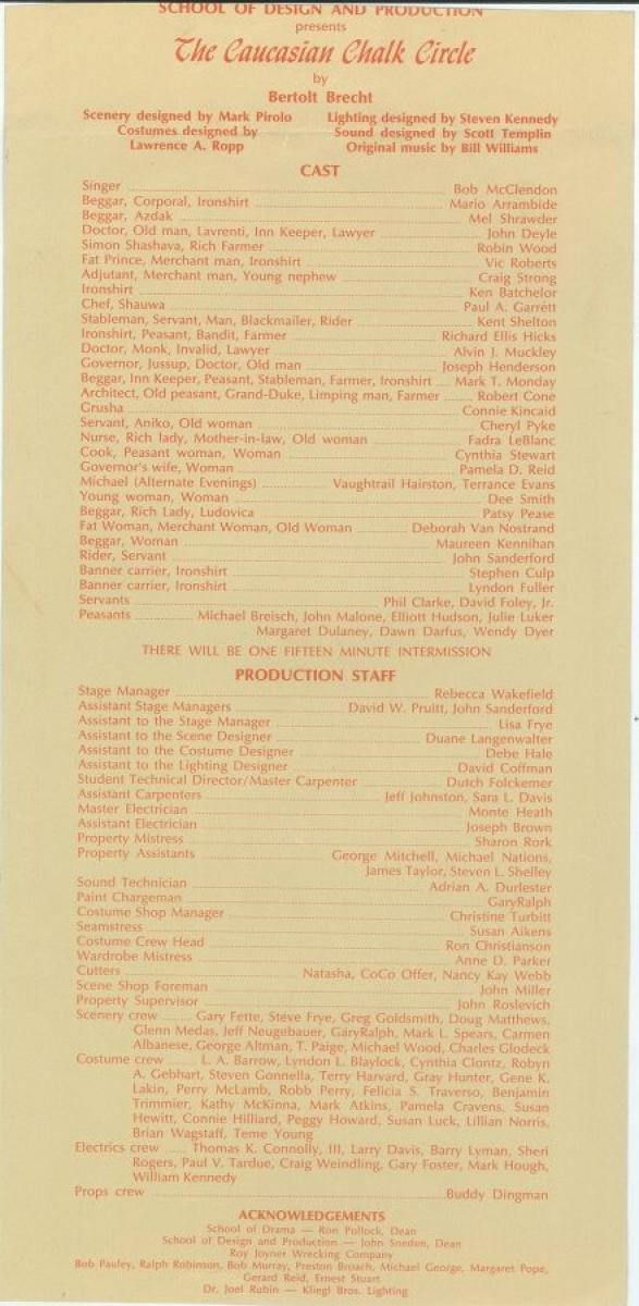 North Carolina School of the Arts - Winston-Salem, North Carolina | Caucasian Chalk Circle | Singer/Storyteller |