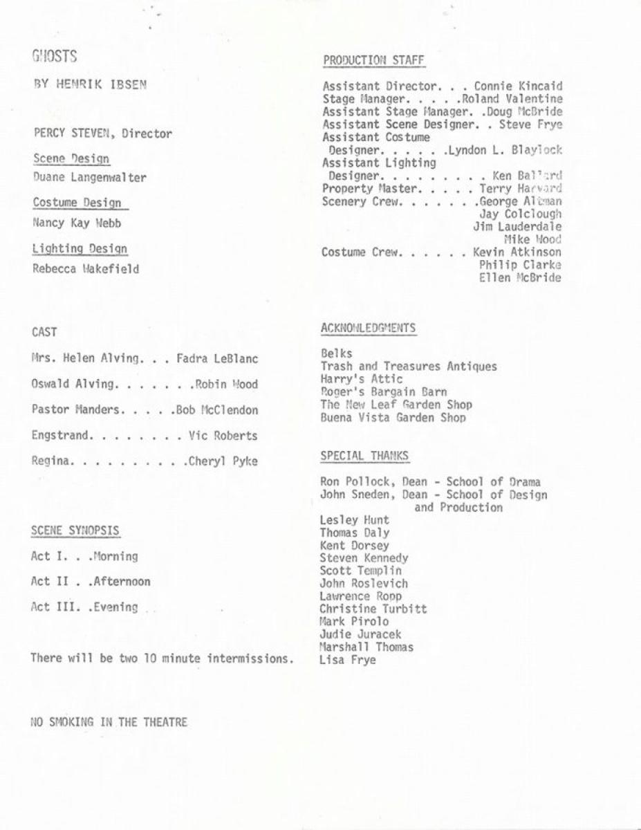 North Carolina School of the Arts - Winston-Salem, North Carolina | Ghosts | Pastor Manders |