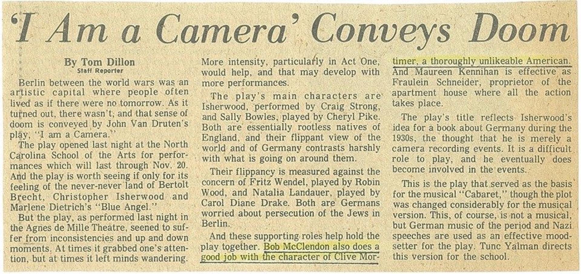 North Carolina School of the Arts - Winston-Salem, North Carolina | I am a Camera | Clive Mortimer |