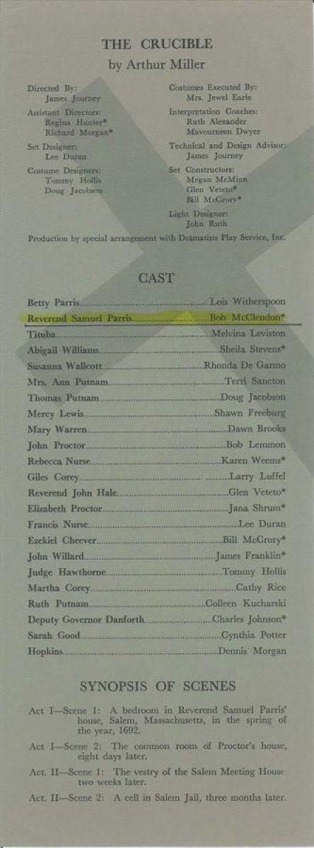 Lon Morris College - Jacksonville, Texas | The Crucible | Reverend Paris |